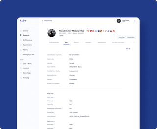 We built a comprehensive resident profile system that consolidates personal and next of kin data, allergies, dietary requirements, status flags, medical history, and dependency levels. Each profile integrates seamlessly with medication and reporting modules, providing staff with a real-time, holistic view of every resident’s care journey.